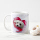 Hübsche weiße Tasse mit einem niedlichen aber drastischen Herzbild von Snowdrop das maltesische.