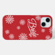 Dieses niedliche iPhone-Gehäuse wird mit Bride akzentuiert, extravagant weiß auf rotem Hintergrund geschrieben und mit vielen Schneeflocken ist es das ideale Geschenk für die neue Braut während der Ferien.