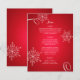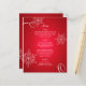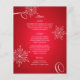 Snowflake Elegance Winterhochzeitsmenü in rot mit dekorativen weißen Schneeflocken und individuellem Text auf Vorder- und Rückseite nach Bedarf verfügbar.