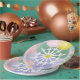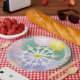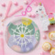 Dieses skurrile und abstrakte Kunstwerk zelebriert die einzigartige Schönheit der Schneeflocken. Eine Sammlung von stilisierten, weißen Schneeflocken, die jeweils ein ausgeprägtes und kompliziertes Muster aufweisen, sind Set vor einem Hintergrund weicher, pastellfarbener Kreise. Die orbs von rosa, blau, gelb und grün schweben und überlappen sich und schaffen eine spielerische und dekorative Komposition. Das Stück verbindet ein Gefühl des Wintercharmes mit einer leichten, spirituellen Einfachheit und verwandelt einzelne gefrorene Kristalle in ein fröhliches, kosmisches Arrangement.