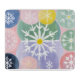 Dieses skurrile und abstrakte Kunstwerk zelebriert die einzigartige Schönheit der Schneeflocken. Eine Sammlung von stilisierten, weißen Schneeflocken, die jeweils ein ausgeprägtes und kompliziertes Muster aufweisen, sind Set vor einem Hintergrund weicher, pastellfarbener Kreise. Die orbs von rosa, blau, gelb und grün schweben und überlappen sich und schaffen eine spielerische und dekorative Komposition. Das Stück verbindet ein Gefühl des Wintercharmes mit einer leichten, spirituellen Einfachheit und verwandelt einzelne gefrorene Kristalle in ein fröhliches, kosmisches Arrangement.