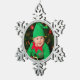 Pewter snowflake ornament is shown with a cute boy elf photo sample.