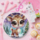 A sweet little reindeer sparkles under a snowy night sky, surrounded by frosted evergreens and twinkling lights. Her gentle expression and soft, glowing colors capture the pure innocence and warmth of the holiday season. A dreamy and heartwarming Christmas scene!