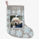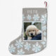 Erstellen Sie Ihren eigenen personalisierten Foto Weihnachts-Strumpf für die Kinder oder Ihre Haustiere mit diesem lustigen White Opal Schneeflocke Template Design. Fügen Sie das Foto Ihres Kindes, einer Katze oder eines Hundes zu den Imitaten hinzu, die in der Mitte des Strumpfs einen irisierenden weißen Opalrahmen bilden. Der Raum oben über den Imitaten weiß opal Schneeflocken erlaubt personalisierte Texte, sodass Sie einen Namen hinzufügen können. Die weiche Taubengraufarbe ist ein schönes Neutral für den Weihnachtsweihnachtsweih dieses Fotos für Haustiere und Kinder, der in einem weißen opalen Schneeflockenmuster dekoriert ist.
