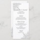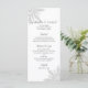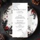 Le menu festif White Snowflakes Winter Wedding Menu peut être personnalisé avec les détails du repas que vous pourrez servir à votre déjeuner de douche nuptiale d'hiver de décembre, janvier ou février, dîner de réception de mariage ou brunch post-mariage. Personnalisez-le avec les noms de la mariée et du marié, l'emplacement du lieu et la date de l'événement. Cet élégant menu mariage d'hiver personnalisé présente des flocons de neige complexes ornant les coins d'un arrière - plan blanc.
