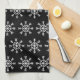 Cette serviette de cuisine est présentée en noir avec un imprimé classique de flocons de neige de Noël. Customisez cet objet ou achetez comme indiqué.