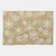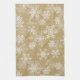 La serviette de cuisine est montrée dans une couleur or avec un imprimé de flocons de Noël de Noël. Customisez cet objet ou achetez tel quel.