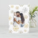 Weihnachts-Weihnachtskarte mit Gold- und Silberschneeflocken mit Schneeflockeneffekt über dem Foto. So eine einfache und doch elegante Urlaubskarte.