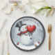 Snowman bietet Liebe mit einem großen Herz Pappteller