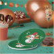 Diese niedlichen Schneemobil-Teller werden Kindern jeden Alters gefallen und sind für jede Ansammlung geeignet. Sie verfügen über einen bezaubernden Schneemann, der einen Hut auf der Oberseite trägt und einen rot-weiß gestreiften Bonbonstock trägt, der mit einem hübschen grünen Bogen verbunden ist. Hinter ihm steht ein weißes Band mit heiligen und zwei goldenen Glocken. Die Bilder werden auf einem dunklen grünen Hintergrund des Urlaubes platziert. Niedlich! Stellen Sie sicher, dass Sie die passenden Papierservietten, Becher und andere Produkte in unserem Geschäft sehen.