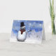 Ein fröhlicher Weihnachtsschneemann, der im fallenden Schnee stehend ist.