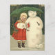Snowman Girl Umbrella Snowfall Postkarte