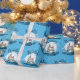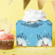 Niedlicher Schneemann in einer Schneekugel mit Schneeflocken auf aquablau Hintergrund. Die Hintergrundfarbe kann geändert werden.