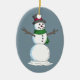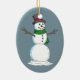 Ein fröhlich aber kühl aussehender Schneemann trägt in dieser winterlichen Illustration von Richard H. Fay einen rot gerippten Oberhut und grünen Schal.