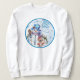 Holiday Sweatshirt mit einem "Let it Snow" Design mit einem Schneemann und seinem furry Freund in einem Santa Anzug.