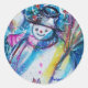 SNOWMAN MIT EIGENEM URLAUB IN DER WINTERNACHT RUNDER AUFKLEBER