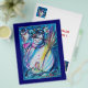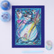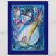 Whimsikale, farbenfrohe und coole Winter Nacht Illustration, Aquarellmalerei in lebendigblau weiß, pink, farbig.