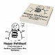 Gummi-Briefmarke, um Ihre Weihnachtsbotschaft zu drucken. Weihnachtskautschuk-Briefmarke. Happy Snowman in the Sunshine. Fügen Sie Ihren persönlichen Gruß hinzu.