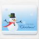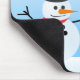 Snowman-Mauspad mit einem niedlichen Schneemann mit einem roten Schal und einem schwarzen Hut auf einem verblassten blauen Hintergrund, der die Wintersaison genießen kann, wenn Schneeflocken unterschiedlicher Formen behalten werden. Ideal für Weihnachten oder andere Gelegenheiten. © Morning 6