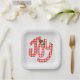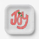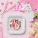 Niedlicher Schneemann und Rot-Weiß Gingham JOY im lustigen Schriftart Stil auf weiß gekalktem Holzboden.