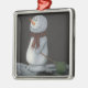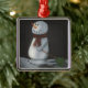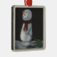 Dieses Snowman-Ornament zeichnet sich durch einen Schneemann aus, der mit farbigen Stiften auf schwarzem Papier handgezeichnet wurde.