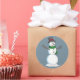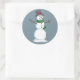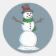 Ein fröhlich aber kühl aussehender Schneemann trägt in dieser winterlichen Illustration von Richard H. Fay einen rot gerippten Oberhut und grünen Schal.