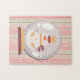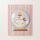 My original artwork is featured on this fun, nostalgic feeling puzzle - which consists of a graphic art snow globe with a snowman inside on a vintage striped patterned background for festive puzzle art. The size of this unique puzzle is 11” x 14”, and in the ‘challenging’ category.