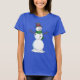 Ein fröhlich aber kühl aussehender Schneemann trägt in dieser winterlichen Illustration von Richard H. Fay einen rot gerippten Oberhut und grünen Schal.