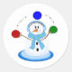 Snowman Tossing Balls Runder Aufkleber
