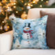 Blau-weiße Dekoratorkissen für die Ferien mit einem niedlichen Schneemann mit Büffel karierter Schal und einem schwarzen Top Hut. Personalisieren Sie Ihren eigenen Text oder ändern Sie die Hintergrundfarbe. Kontaktieren Sie mich für Hilfe bei Ihren Anpassungen.