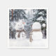 Two snowmen were having a lively snowball fight in a beautiful winter forest, where one snowman lost his carrot nose