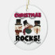 Schneemänner in Top-Hüten und und Text, der "Weihnachtsfelsen!" auf einem Feiertagsschmuck perfekt für alle, die Schneemänner und Weihnachten Lieben!