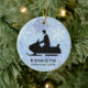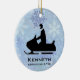 Schneemobil-Ornament auf einem Schneeflockhintergrund. Alle Texte individuell anpassbar, vorne und hinten!