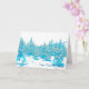 Ein stilisiertes, blaues Monotonbild von Koniferenbäumen, die mit Schnee bedeckt sind. Fügen Sie Ihren eigenen Text hinzu.