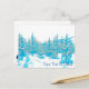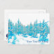 Ein stilisiertes, blaues Monotonbild von Koniferenbäumen, die mit Schnee bedeckt sind. Fügen Sie Ihren eigenen Text hinzu.