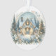 A serene snowy cottage glows beneath a star-lit winter sky, framed by twinkling trees, soft lantern light, and delicate botanical flourishes in muted blues, creams, and gentle golds. The scene blends cozy cottagecore charm with whimsical holiday warmth, wrapping the viewer in a nostalgic, storybook mood. Frosted evergreens, soft snowfall, and graceful florals create an enchanting, peaceful atmosphere perfect for lovers of dreamy folk aesthetics and soft watercolor winter themes. AI generated artwork.