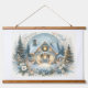 Snowy Cottage Glow Scene Wandteppich Mit Holzrahmen