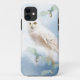 Eulen, Eulen, Eulen! Schöne schneebedeckte Eule oben in den Wolken.