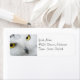 Weiße schneebedeckte Eule mit durchstechenden gelben Augen.
