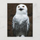 Snowy Owl - Das Portrait einer schneebedeckten Eule, die auf einem Baumstamm stehend ist. © Alan Harman Fotografy 2009. Alle Rechte vorbehalten. www.alanharmanphotography.com