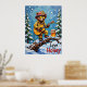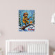Dieses charmante Kunstwerk zeigt einen Bären, der als Feuerwehrmann verkleidet ist, mit Helm und Sonnenbrille, der auf einem schneebedeckten Baumzweig eine akustische Gitarre spielt. Ein Honigglas liegt in der Nähe der verschneiten Landschaft, umgeben von schneebedeckten Bäumen unter einem weichen blauen Himmel mit fallendem Schnee. Das Gemälde verwendet dicke, strukturierte Pinselstriche, die ein skurriles und herzzerwärmendes Gefühl verleihen, mit "Liebe My Honey", geschrieben unten.