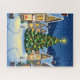 Ein schöner, schneebedeckter Stadtplatz mit einem großen, leuchtenden Weihnachtsbaum, der mit farbenfrohen Ornamenten und Lichtern geschmückt ist. Die umliegenden gemütlichen Häuser und die freundlich beleuchteten Schaufenster schaffen eine magische Urlaubsatmosphäre. Ideal für Weihnachtsdekoration, festliche Geschenke und Winterpuzzle-Liebhaber.