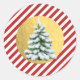 Snowy Tree Weihnachten Rote Streifen Gold Fossil Runder Aufkleber