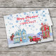 Senden Sie ein bisschen Connecticut an Ihre Freunde und Familie in dieser Urlaubssaison, mit diesem niedlichen Aquarell-Design eines schneebedeckten Dorfes. Im Bild sind farbenfrohe Häuser, ein Schneemann und ein roter LKW mit einem Weihnachtsbaum im Hintergrund enthalten. Eisblaue Schneeflocken fallen vom Himmel ab. Der Text in rot oben kann auf alles geändert werden, was man möchte, ebenso wie der Text im Inneren. *Das Image Design Guthaben bei EphrazyDesign.