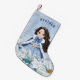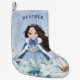 Dieser bezaubernde, schneebedeckte Winterprinzessin Strumpf besticht durch eine junge Prinzessin mit schwarzem Haar, die einen blauen und weißen Schneeflockenmantel und einen mit warmen Fellen gesäumten Kap trägt. Die Prinzessin ist von Poinsettien umgeben. Sie können mit dem Namen Ihrer Prinzessin personalisieren!