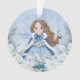Cet adorable ornement de princesse hivernale enneigée présente une belle jeune princesse aux cheveux bruns portant une robe de flocon bleu et blanc et une cape à fourrure chaude doublée. La princesse est entourée de poinsettias. Vous pouvez personnaliser avec le nom spécial de la princesse et l'année!