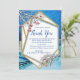 Eine blaue Winterfantasy-Szene mit geometrischem Goldrahmen lässt sich leicht mit Ihrem Text, Schriftart, Schriftart, Papierform und der Wahl von zwölf Papiertypen anpassen.