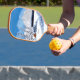 Ein Pickleball-Paddel mit einer schönen Winterlandschaft inklusive schneebedeckten Bergen, rustikaler Hütte und schneebedeckten Evergreens. Text kann personalisiert oder weggelassen werden. Original-Kunstwerk von W.B.