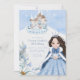 Die schneebedeckte Party Einladung Princess Tea besticht durch eine junge Prinzessin mit schwarzem Haar und einem blauen und weißen Schneeflocken und einem mit warmen Pelzen gesäumten Kap. Die Prinzessin hält eine Teetasse mit einer blauen Schneeflocke vorne. In der Ferne befindet sich eine schneebedeckte Burg mit einem Banner, auf dem steht: "Komm mit uns für einen Prinzessentee." Sie können sich mit allen Besonderheiten Ihres Party personalisieren!