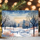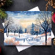 Schick herzliche Wünsche in dieser Urlaubssaison mit dieser schönen Winterszene. Mit einer schneebedeckten Landschaft mit Bäumen, einem Pfad und einem sanften Sonnenuntergang bewundert diese Karte die friedliche Schönheit des Winters. Die einfache Botschaft "Snowy Greetings!" fügt eine Touch von Wärme und Fröhlichkeit hinzu.